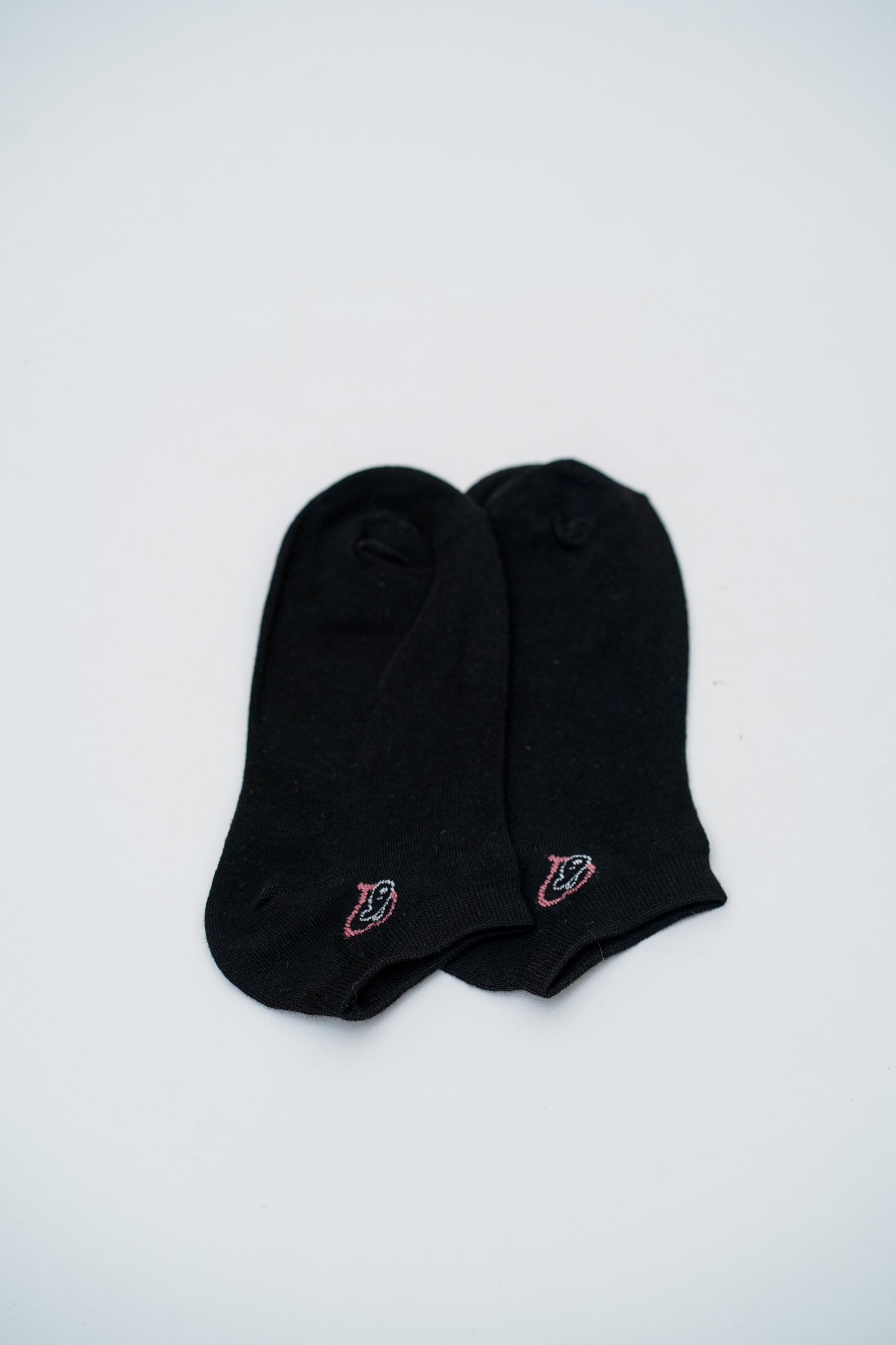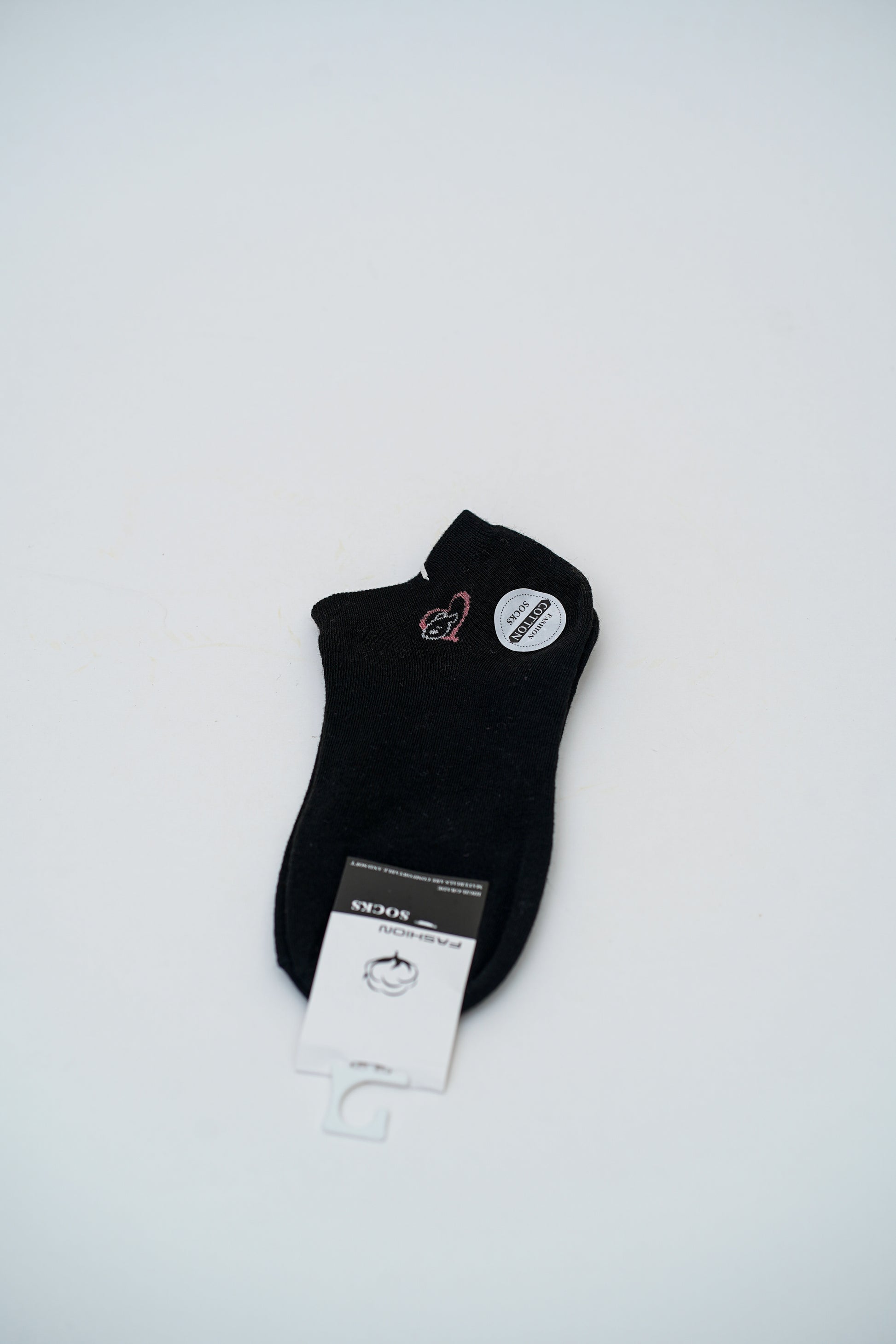 Elevate your essentials with these versatile and comfortable black ankle socks. This set is perfect for those who love a classic look with a touch of playful personality. Each sock is adorned with a unique and subtle graphic design, offering a variety of styles to suit your mood. The designs include: