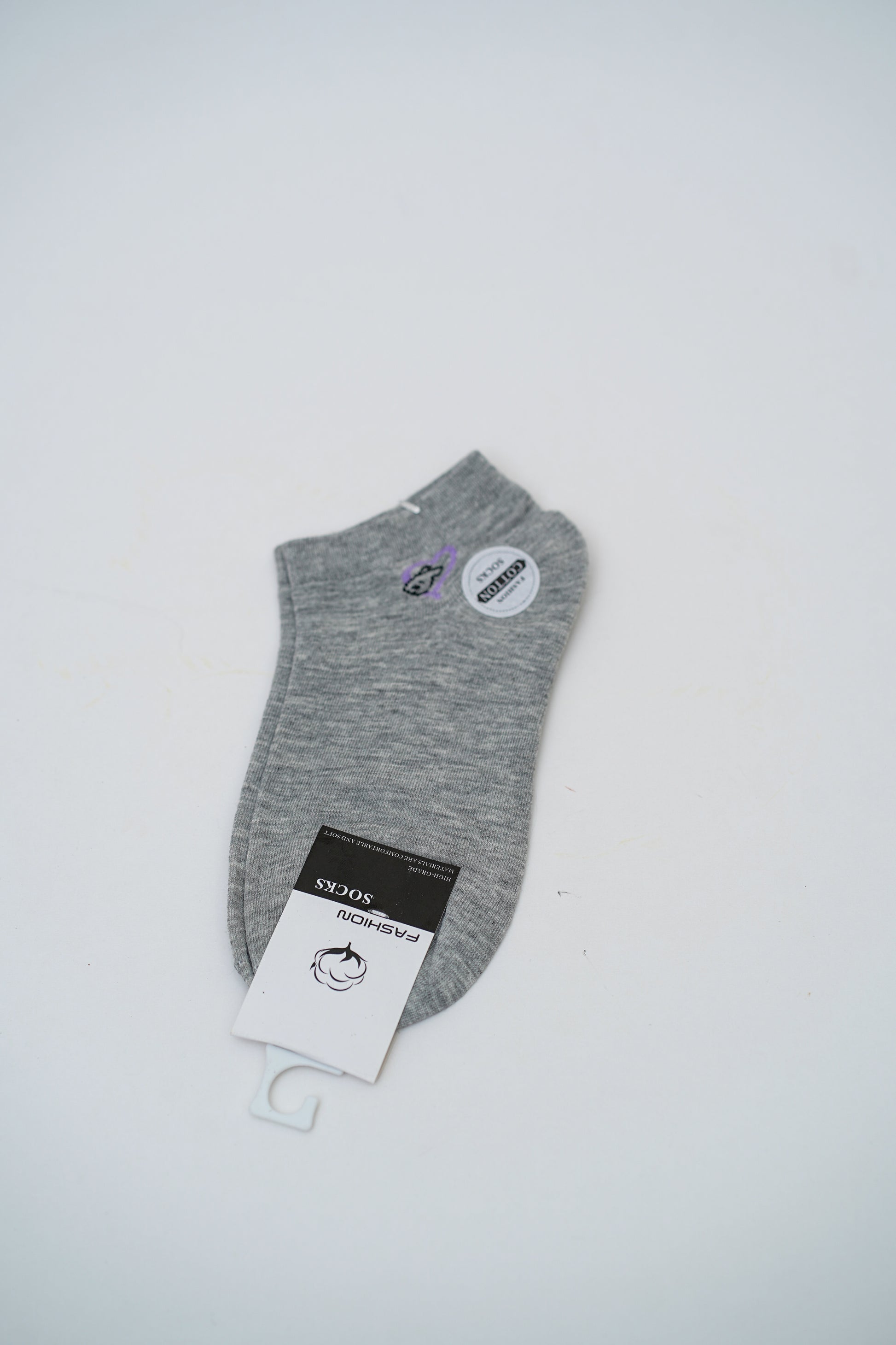 Heather Gray Ankle Socks with Cloud and "Smile" Graphics